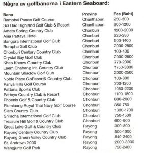 Inom en timmes bilfärd från huset når man 10 golfbanor med väldigt hög klass. Inom 2 timmar når man ytterligare 50 banor. En annan golfbana inom nära avstånd är Eastern Star Golf and Countryclub som har allt man kan önska. Förutom själva banan även thaimassage, gym, swimmingpool, tennisbanor, spa, ridning, fiske etc och detta cirka 50 minuter från huset.